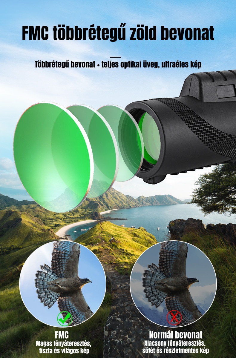 40×60 HD kültéri egyszemes távcső – BAK-4 prizma, széles látómező, kompakt és könnyen hordozható